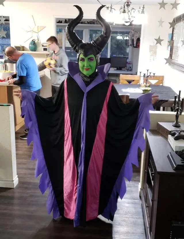 My costumes were never big or elaborate, and I never made them myself, but I was always very excited to plan them. In recent memory only two of my costumes actually had hand made components. One year we cosplayed as our Pokémon Go trainers and I crocheted Magikarp hats for my husband and I. Another year I wanted to go as Maleficent, and my brother had just gotten a shiny new 3D printer. He printed off some big horns for me and I tried my hands at making a paper mâché head cap to attach them to, and I wrapped them in faux leather. They weren't perfect, and that head piece was so warm, but I loved how it looked.